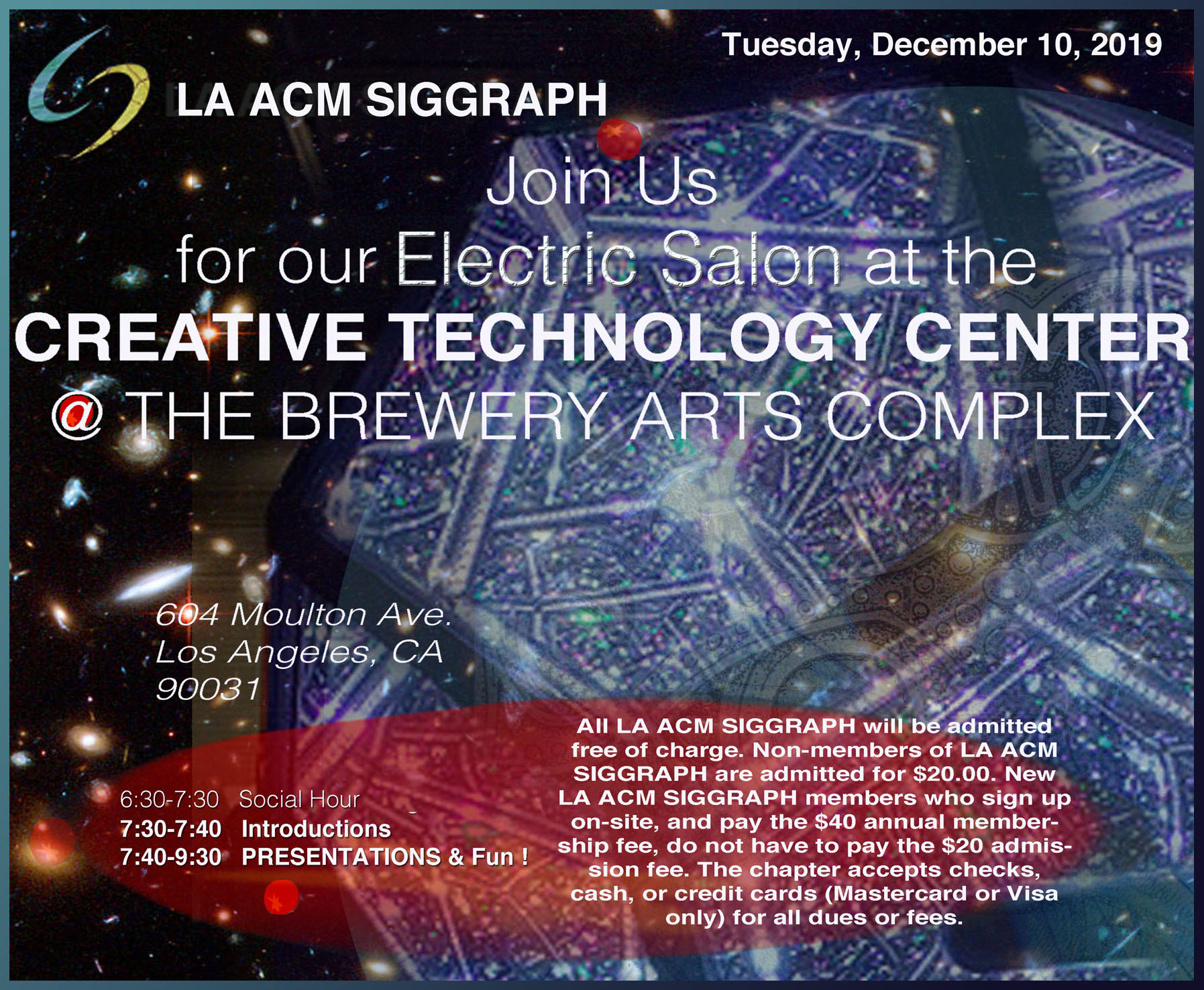 Come network with your SIGGRAPH community and celebrate LA's incredible creative and technical talent at our Electric Salon! We're inviting 5-minute "Pecha Kucha" talks plus screenings of shorts, reels, and tech demos. This is a great opportunity for networking and show-and-tell. Chapter members may bring a guest for free!