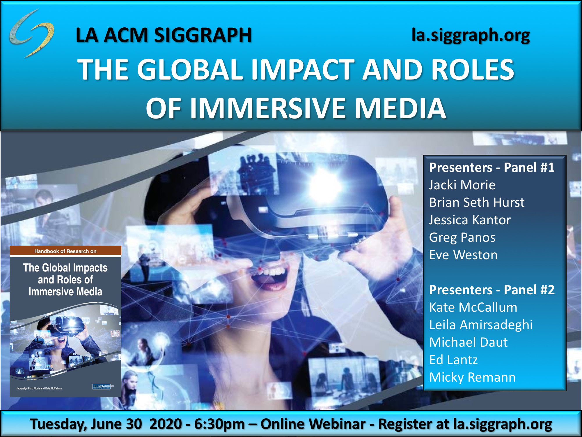 Los Angeles Chapter of ACM SIGGRAPH invites you to attend a special online interactive presentation from the authors and editors of the newly released Handbook of Research on Global Impact and Roles of Immersive Media. Zoom registration is required for this event.