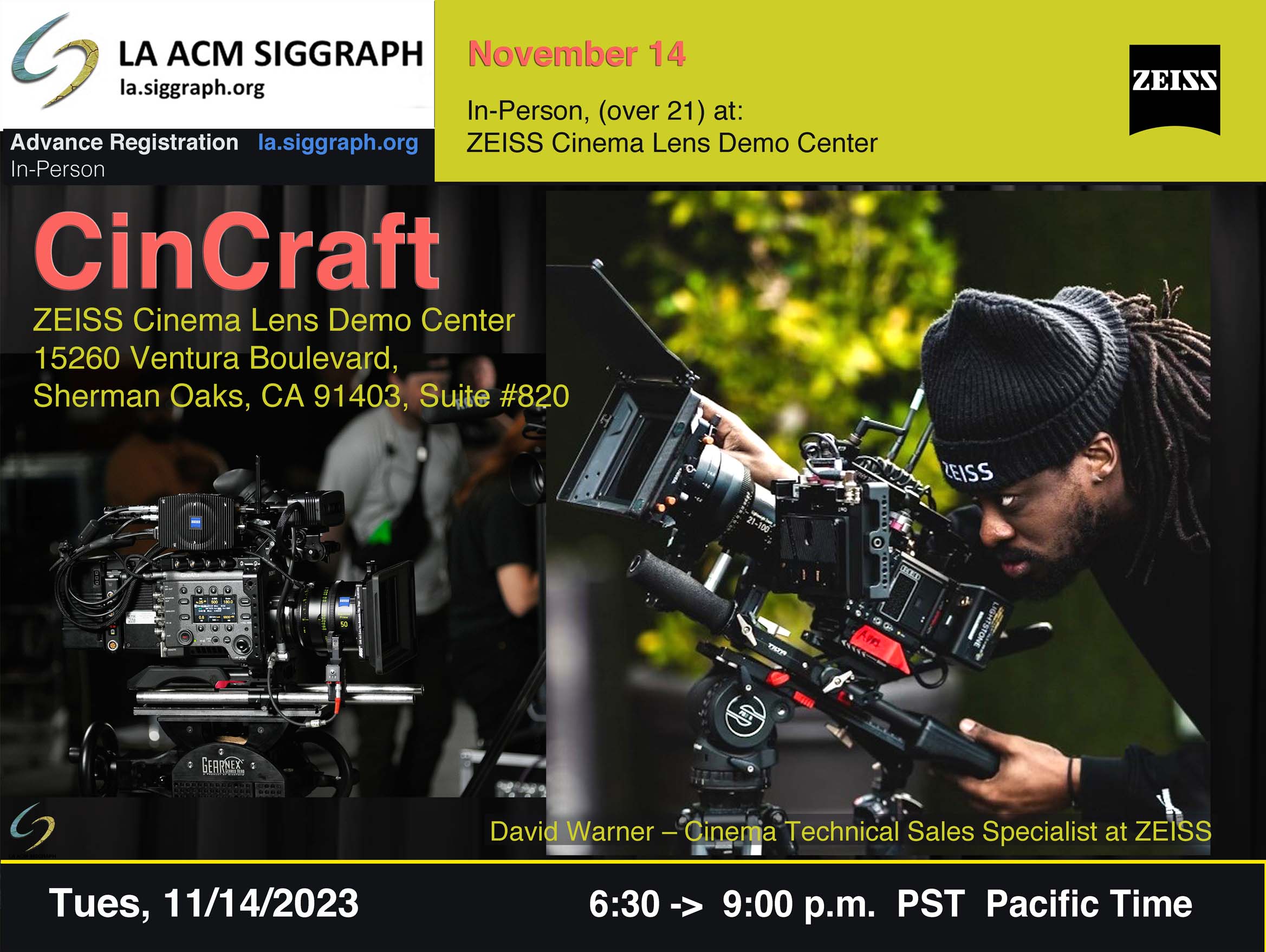 Anna Schmidt and everyone at the ZEISS Cinema Lens Demo Center; Presenters: David Warner, Tanner Grimshaw, and Nick Hayes. Sunil Rampersad, Joan Collins, Larry Rosenthal, Leonard Daly, and all the members of the Executive Council of the LA chapter of ACM SIGGRAPH.